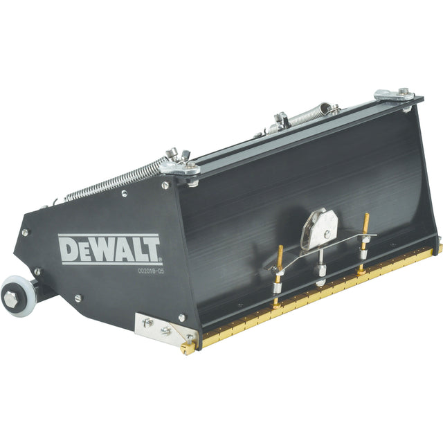 Se usa una caja plana junto con una manija de caja plana para aplicar de manera eficiente una capa de compuesto para juntas en forma de pluma sobre juntas encintadas en paredes y techos. Las cajas planas DEWALT MEGA contienen hasta un 30 % más de compuesto para juntas que las cajas planas estándar DEWALT . Las cajas planas DEWALT MEGA cuentan con una carcasa de aluminio de primera calidad con una capa dura anodizada para una durabilidad extrema y una fácil limpieza. Están equipados con un portacuchillas de latón flexible y una cuchilla de acero inoxidable, así como patines y zapatas de acero inoxidable. Un dial de ajuste de corona proporciona 5 configuraciones, por lo que se puede dispensar la cantidad ideal de compuesto en la pared para garantizar resultados profesionales uniformes. Las cajas planas DEWALT MEGA tienen un sello de placa de presión compuesto de primera calidad y los bordes biselados en la carcasa de la caja aseguran una fácil apertura y cierre. La placa de presión también se abre más ancha para facilitar la limpieza. Las cajas planas DEWALT MEGA están equipadas con ruedas que no dañan con rodamientos duraderos para un funcionamiento ultra suave. Las versiones de 7” y 10” de las cajas planas también vienen de serie con extensiones de ruedas “externas” para usar al terminar los rebordes de las esquinas exteriores. Extensiones de ruedas OPCIONALES DEWALT “Outsider” para terminar los talones de las esquinas exteriores (DXTT 2-862). Viene estándar con cajas planas DEWALT MEGA de 7” y 10”. Los mangos extensibles de caja plana DEWALT están disponibles en cuatro longitudes: