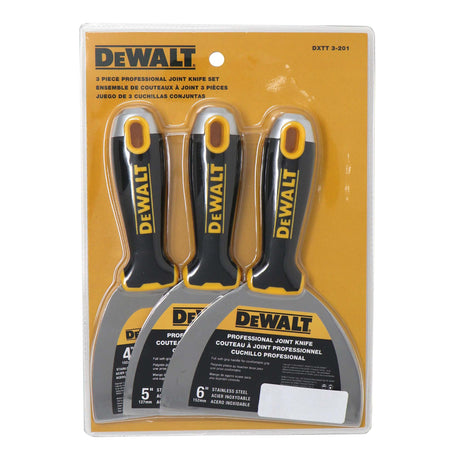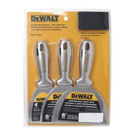 - DeWalt - Juego de cuchillos para juntas de acero inoxidable profesional DeWalt con empuñaduras DXTT-3-203 Precio de venta $8946 CAD Precio normal $10525Precio unitario /Agotado