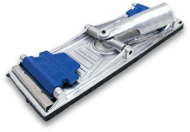 La lijadora de poste MARSHALLTOWN tiene un soporte giratorio antideslizante de perfil bajo que la convierte en una herramienta ideal para lijar juntas de paneles de yeso hasta que queden al ras con las paredes circundantes. Está hecho de aluminio fundido a presión reforzado y liviano y adherido a una almohadilla de gomaespuma para una mayor durabilidad. La hoja tiene abrazaderas de bloqueo de cambio rápido para un reemplazo más rápido del papel de lija.