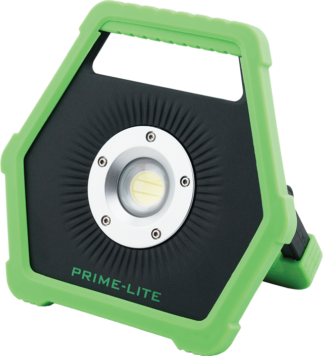 Luz de trabajo de mano Chip-on-Board (COB) de 10 vatios capaz de producir una inundación de 1200 lúmenes de luz blanca pura. El reflector circular difunde la luz en todas las direcciones haciendo que el área iluminada crezca rápidamente con la distancia. El cuerpo de la luz es fácil de transportar y perfecto para iluminar cualquier espacio de trabajo. Un borde de goma amortiguador protege el cuerpo de aluminio de cualquier daño.