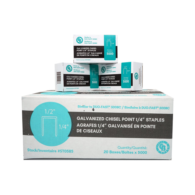 Estas grapas tienen una corona más ancha (1/2”) que las grapas de estilo estándar. Se usa para la instalación de cordones Trim-Tex, instalación de barreras de vapor, etc. Se usa con grapadoras DF50 Tacker y Duo-Fast. Corona de 1/2″.