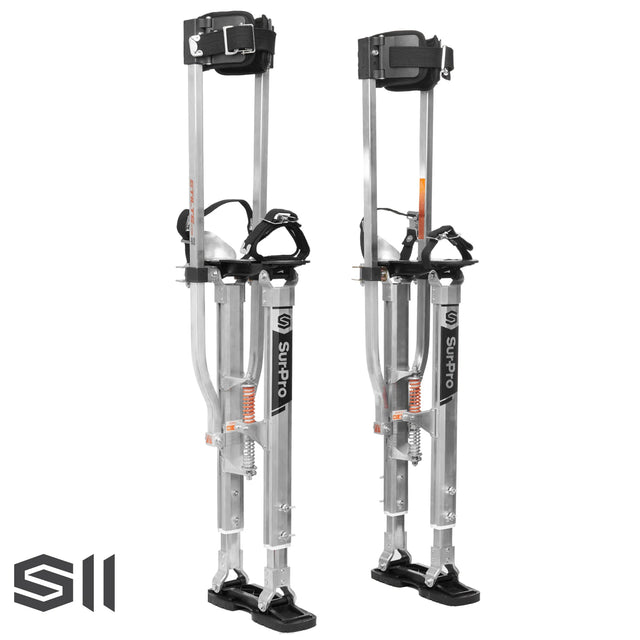 SurPro fijó el listón y luego lo rompió con la invención de los pilotes de paneles de yeso de doble cara. El SurPro S2 recientemente actualizado maximiza el rendimiento diario al elevar aún más su comodidad y estabilidad. Un mejor equilibrio y comodidad equivalen a menos fatiga y mayor rendimiento para los contratistas de paneles de yeso. Súbase a nuestros zancos para drywallers más vendidos en todo el mundo. Alcance nuevas alturas con modelos de altura telescópica que van desde un mínimo de 16 "a un máximo de 40". Las bandas para piernas S2 brindan 360 grados de comodidad y seguridad y se pueden subir y bajar para ajustarse a la altura deseada. Los marcos extruidos hexagonales duraderos y livianos presentados en aluminio resistirán la prueba del tiempo. Doble los pernos de mariposa para mayor seguridad y longevidad de las piezas internas. Sistema de seguridad mejorado Interlock exclusivo para redundancia de seguridad. Suelas industriales que no dejan marcas y agarre superior en todos los modelos. 225 libras máx. Carga (por pareja).