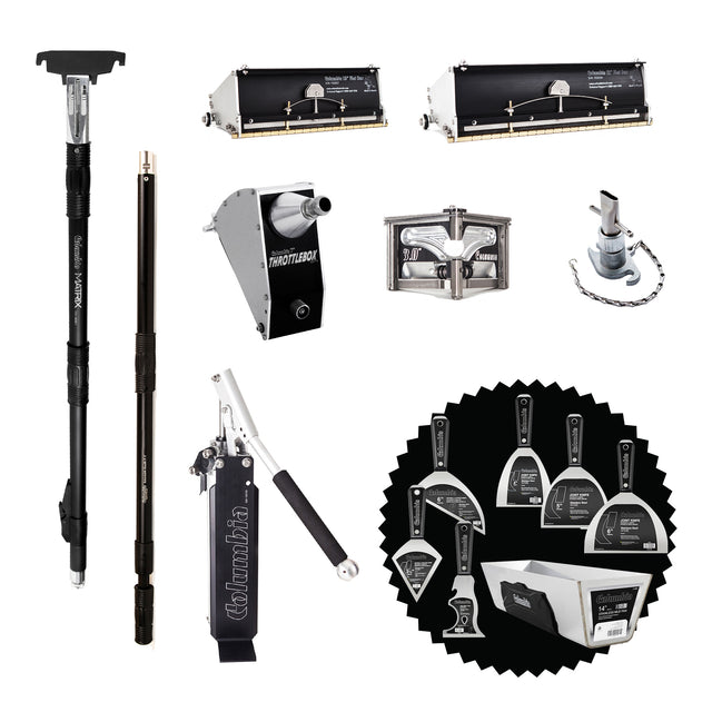 El sistema Columbia One Handle está diseñado para funcionar con todos sus productos Columbia. Desde los clavadores de clavos y los cabezales angulares hasta los rodillos y las cajas de esquinas, este sistema le permite aligerar su carga y seguir utilizando todas sus herramientas de acabado favoritas. Con la excepción de las cajas planas, este sistema es todo lo que necesita.