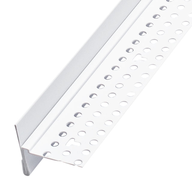 Se utiliza para crear un borde acabado cuando se unen paneles de yeso a otro sustrato. La tira removible proporciona ½" de protección contra el barro y también actúa como guía para la cuchilla de encintado.