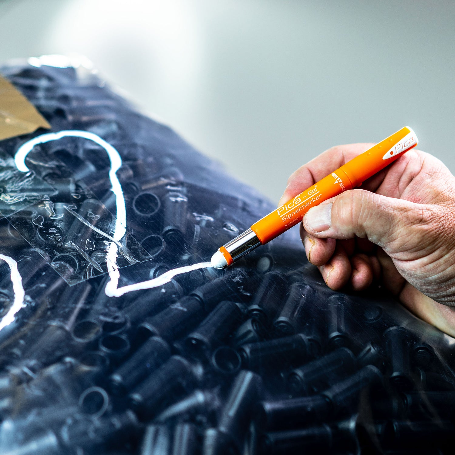 Rapide, efficace et hautement permanent : le Pica Gel remplace parfaitement les marqueurs à tube et permet de marquer toutes les surfaces avec un contraste intense, même à des températures allant jusqu'à 1 000 °C. Idéal pour le marquage sur métal, même rouillé ou huileux, sans chlorure.