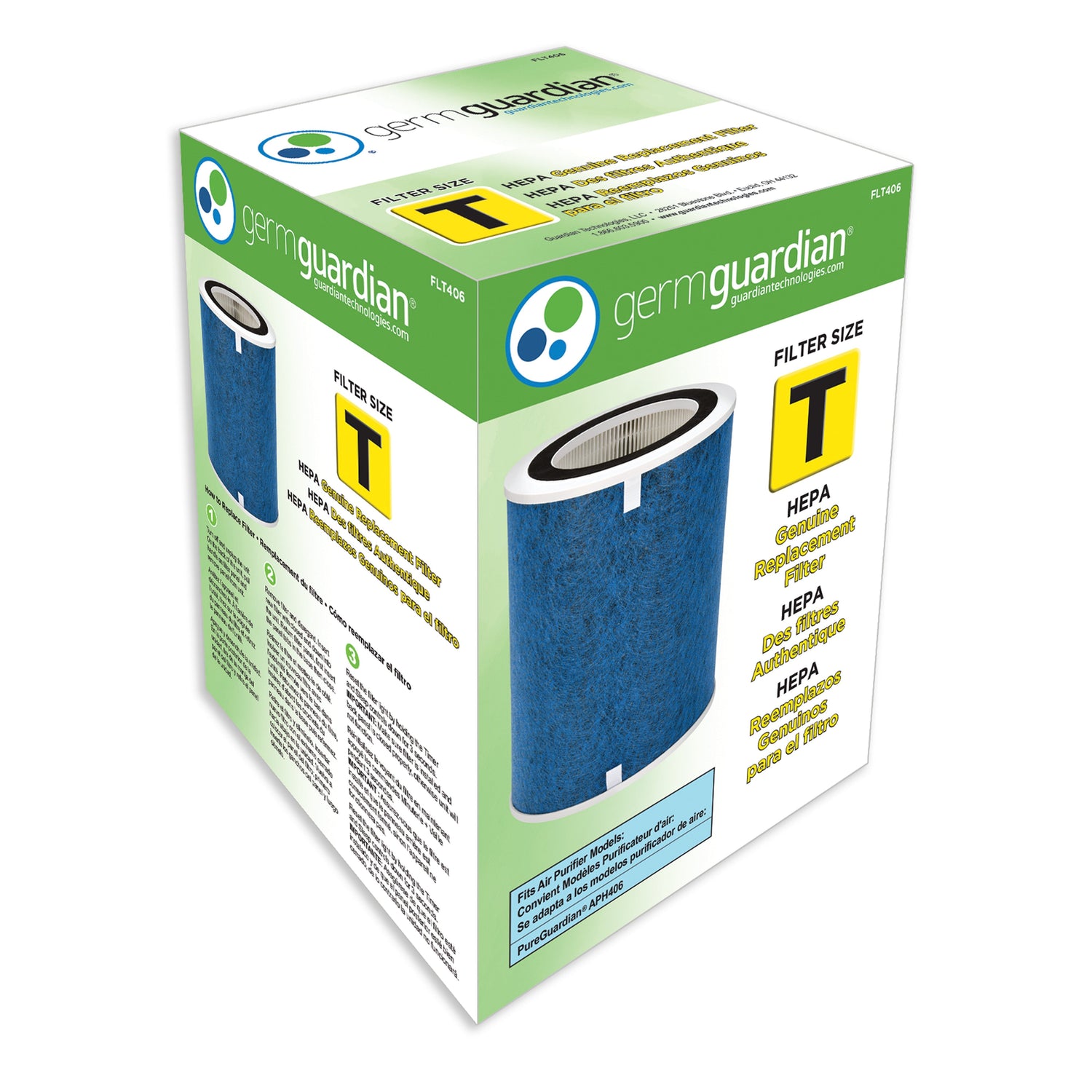 GermGuardian® FLT406 HEPA GENUINE Replacement Filter T is a combination filter. It incorporates multiple layers of filtration including HEPA and charcoal to help improve your indoor air quality. HEPA filter captures 99% of dust and allergens, pet dander, mold spores and plant pollens. It is recommended to use with the GermGuardian® APH406W. The use of this genuine Guardian Technologies™ replacement part will maintain the product's performance.